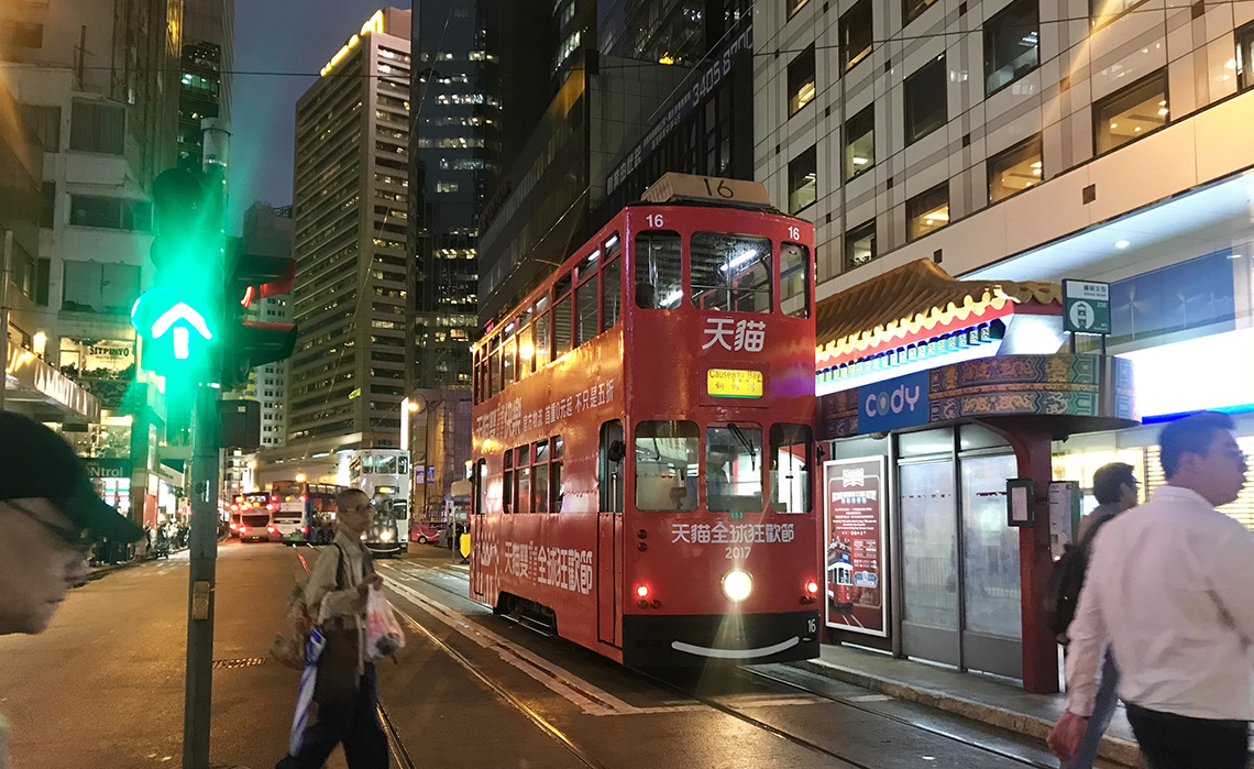 Mit dem schmalen, aber fabelhaften „Ding Ding Tram“ fuhren wir anschliessend noch ein paar Stationen und stiegen danach auf die berühmte Rolltreppe mit dem Namen „Central-Mid-Levels Escalator“. Diese ist mit seinen 800 Metern die längste überdachte Rolltreppe der Welt und verbindet auf 135 Höhenmeter zwei Stadtteile.