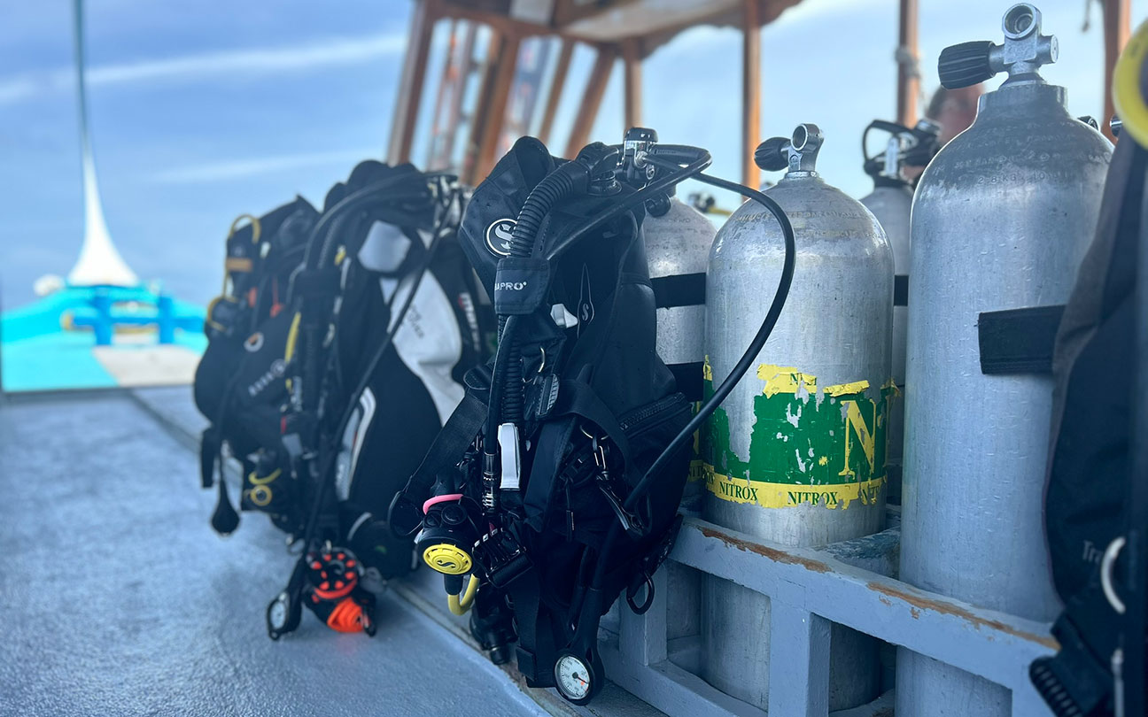 Die Reise zur zweiten Insel «Nova Maldives» ist kurz und unkompliziert, per Boot dauert sie nur zehn Minuten. Im Resort mit seinen gerade mal 76 Unterkünften, eingebettet in die traumhafte tropische Vegetation und mit endlosem Blick über den Indischen Ozean herrscht eine familiäre Atmosphäre. Auch hier warten neue Abenteuer unter Wasser auf uns. Am Tauchplatz «Kuda Rah Thila» bestaunen wir die unzähligen lilafarbenen Fächerkorallen, die das Riff schmücken, und schwimmen mitten in einem riesigen Schwarm von Blaustreifen-Schnappern. An der strömungsreichen Ecke des Riffs erspähen wir beeindruckende Graue Riffhaie, und auf dem Riffdach beobachten wir eine Schildkröte, welche unbeeindruckt von unserer Anwesenheit nach Nahrung sucht.