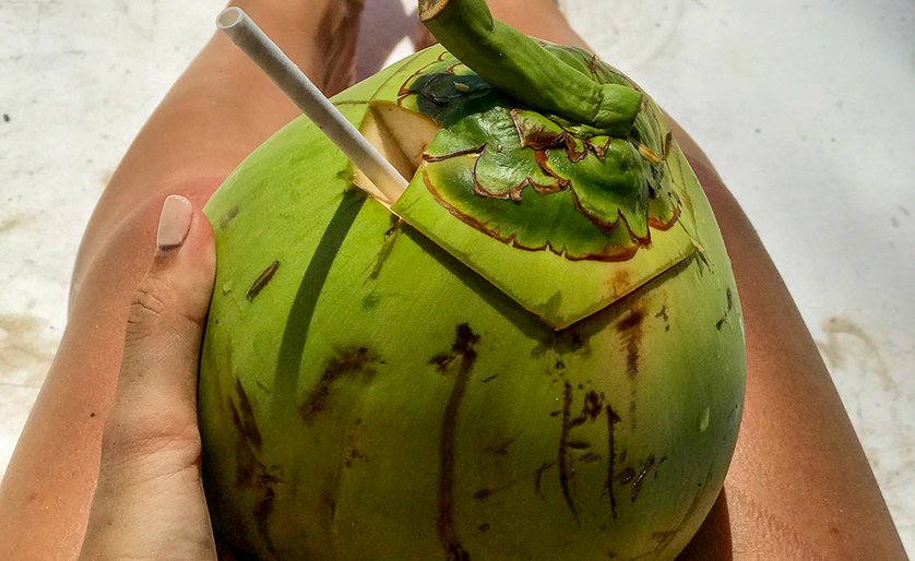 Diese Insel bietet mehr, als sie vermuten lässt. Mit Rollern erkunden wir die Insel, baden an versteckten Stränden, wandern mit den Einheimischen durch den Palmen-Dschungel und werden mit den feinsten Mangos und Bananen überhäuft. Alles frisch gepflückt vom Garten. Nebenbei klettert mein Onkel mit seiner Machete auf Palmen hoch und erntet nur die besten, jungen Bukos (Kokosnüsse) für uns. Das Fruchtfleisch ist noch rosé und so zart, dass es auf der Zunge nur so zergeht, eine willkommene Erfrischung nach einer langen Wanderung. Es fällt uns schwer, die Insel zu verlassen – es sind vor allem die Menschen, die diesen kleinen Ort zu etwas Besonderem werden lassen.
