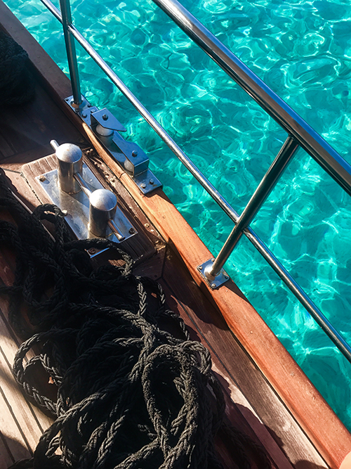 Die nächsten sieben Tage verbrachten wir grösstenteils auf dem Wasser, denn auch am Abend wurde nicht an Land angelegt, sondern wir ankerten in kleinen, lauschigen Buchten weit abseits der Zivilisation. Dies war zu Beginn noch gewöhnungsbedürftig, da unser Bewegungsdrang zuerst noch überhand hatte, jedoch setzte der «Ruhezustand» nach einem Tag auch langsam, aber sicher bei uns ein.