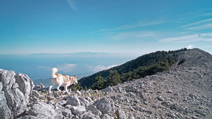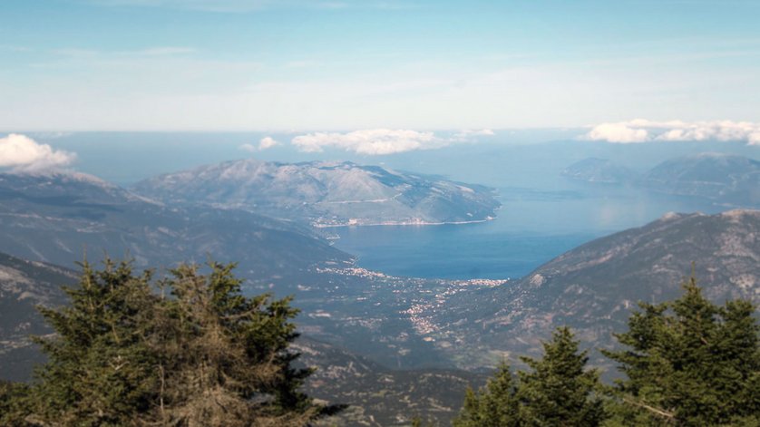 Schnee auf einer Mittelmeerinsel? Geht das? Klar. Auf Kefalonia liegt während der Winterzeit auf dem Gipfel des Berges Ainos Schnee. Ein unvergleichliches Bild. Als Husky-Besitzer verspüren wir eine besonders enge Bindung zum Winter. Die Region Ainos ist für uns während der kalten Jahreszeit deshalb wie ein Magnet. Wenn es weiss vom Gipfel glitzert, zieht es uns automatisch in die Höhe. Von Argostoli sind es mit dem Auto ungefähr 30 Minuten. Die Fahrt selbst ist jeweils schon ein grosses Vergnügen. Von oben betrachtet versprühen die umliegenden Landschaften noch mehr Charme.