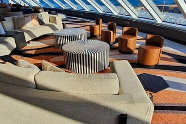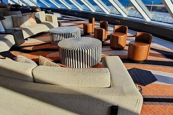 Auf Deck 8 spielt sich einiges ab. Der Outdoor Bereich zum Verweilen. Hier spaziert man rund ums Schiff, liest in einer ruhigen Lounge im Buch, geniesst an der frischen Luft sein Frühstück, Lunch oder Dinner, kühlt sich im Infinity Pool ab oder gönnt sich beim Sonnenuntergang einen Cocktail an der Soleil Bar. Dieses Aussendeck ist mehr als gelungen mit seinem vielseitigen, geschmackvollen und trendigen Design. Für etwas Nervenkitzel sorgen die auf beiden Seiten des Schiffes angebrachten überhängenden Promenaden mit gläsernem Boden.Was für ein Gefühl direkt über dem Meer zu schweben!