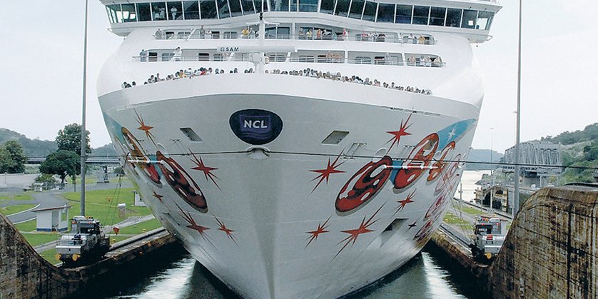 Es ist frühmorgens kurz vor sieben Uhr, und wir liegen mit der Norwegian Pearl in der Bucht vor Panama-City. Der Himmel zeigt sich tiefblau. Die Sonne blitzt am Horizont langsam auf, über der Skyline rechts von uns liegt ein leichter Dunst. In der Bucht wartet eine Vielzahl von Frachtschiffen auf ihre Freigabe für die Kanalfahrt. Uns hat der Kapitän mitgeteilt, dass wir um 07.00h unseren «Slot» haben. Also früh Aufstehen war angesagt. Den ersten Kaffee habe ich nun bereits an Deck getrunken, bei einer angenehmen Aussentemperatur von 25°C. Bestimmt wird es am Nachmittag um die 30°C mit tropischer Luftfeuchtigkeit, aber das ist mir egal, denn diesen Tag ersehne ich schon lange und ich werde so oder so die grösste Zeit draussen an Deck verbringen. Dieses Spektakel will ich auf keinste Weise missen!