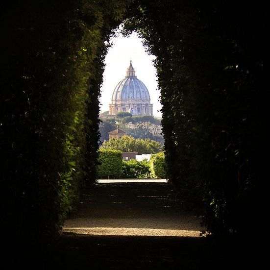 Der vom Architekten Piranesi geschaffene Blick durch das Schlüsselloch bietet eine Art optische Täuschung, indem der Petersdom plötzlich ganz nah wirkt, obwohl er weit entfernt ist.