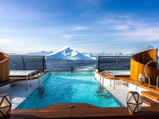 Aufs Tanzen muss man bei Seabourn auch nicht verzichten – was wäre eine Kreuzfahrt mit Seabourn ohne ihre legendären Tanzparties? Im Club auf Deck 9 hinten ist für Live-Musik und einen abendlichen Umtrunk gesorgt. Mein Lieblingsort am Schiff ist der Infi nity-Poolmit 2 Whirlpools auf Deck 5 hinten und ein Geheimtipp ist die Sky Bar auf Deck 9 (der einzige Raucherbereich am Schiff ) mit weiteren 2 Whirlpools, in denen man sich vorspektakulären Kulissen entspannen kann. Kulinarisch gibt es auch viel auszuprobieren: Der Seabourn Kaviar ist inklusive und kann jederzeit nach Lust und Laune bestellt werden. Probieren Sie auch unbedingt das Pre-Dinner Sushi im «The Club»!