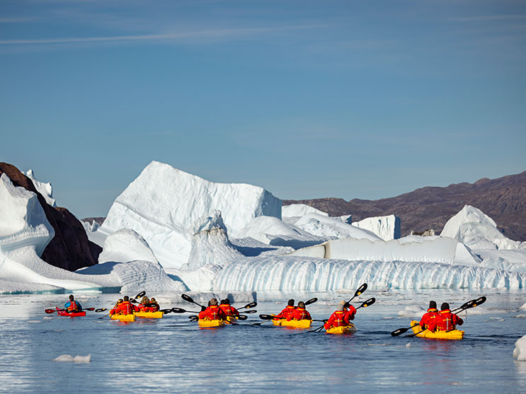 8 Doppel-Kayaks stehen aktiven Abenteurern für Erkundungen zur Verfügung. Die kostenpflichtigen Ausflüge mit den Naturführern können im Vorhinein reserviert oder an Bord gebucht werden.