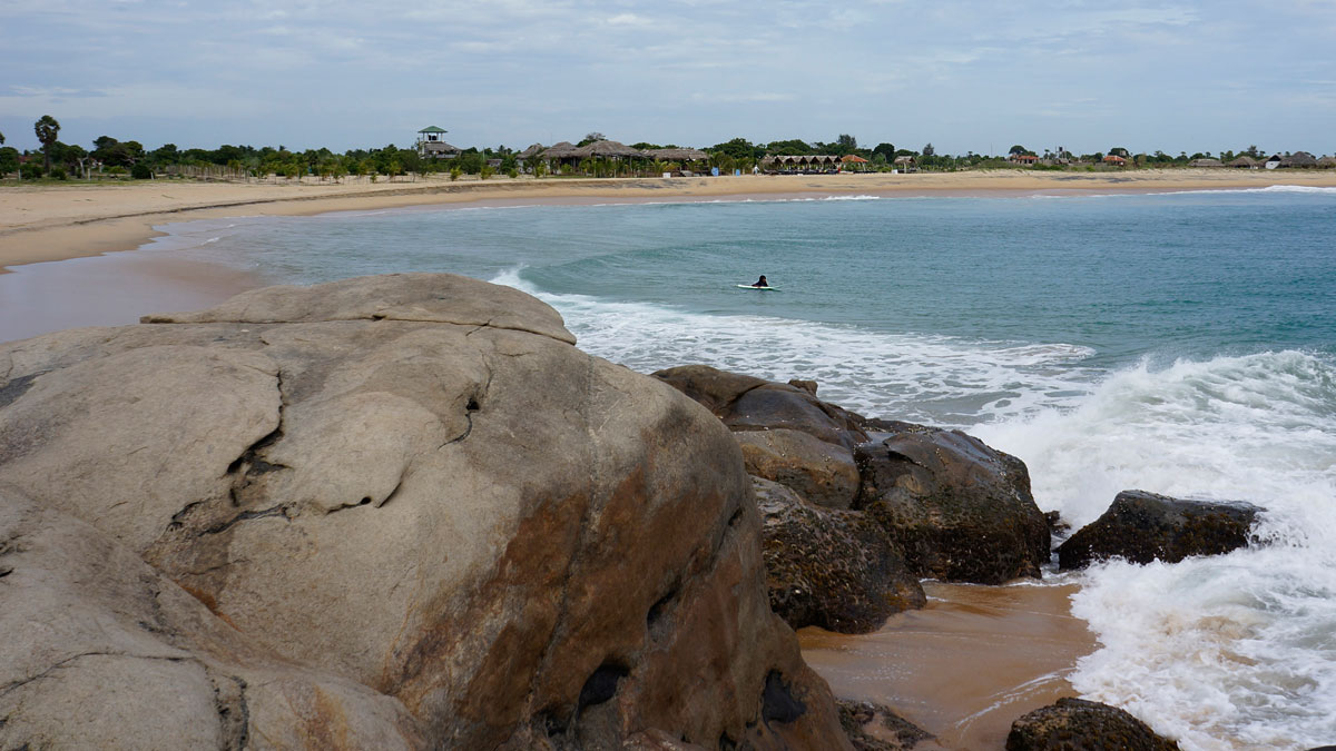 Nach einigen Tagen fahre ich weiter nach Batticaloa, das in einer Bucht an der Ostküste liegt. Es ist nicht ganz einfach, eine Unterkunft am Strand zu finden — dafür habe ich diesen wundervollen Ort ganz für mich alleine. Da es hier kaum schattenspendende Palmen gibt und die Sonne unbarmherzig herunter brennt, gehört ein Schirm ins Gepäck. Am Abend schlendere ich durch die Stadt, die unspektakulär, dafür aber authentisch ist. Ich begebe mich auf die Suche nach den «Singenden Fischen». Angeblich soll ihr Gesang in mondhellen Nächten und bei ruhiger See hörbar sein. Dazu wird ein Padel ins Meer getaucht und das Ohr ans andere Ende gehalten. Liebhaber von Sri-Lankischem Kunsthandwerk werden in Batticalao sicherlich auch fündig. Insgesamt reichen zwei Tage für die Erkundung der Ortschaft aus.
