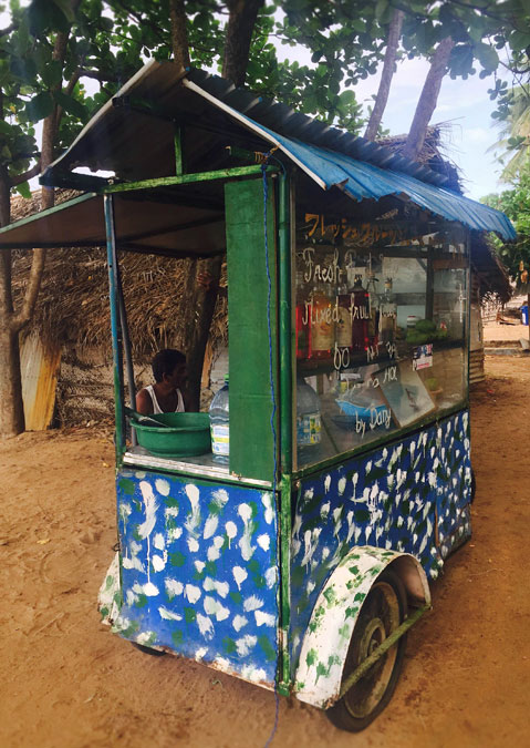 Der Hotelbesitzer in Negombo erklärt mir, dass ab der zweiten Hälfte des Jahres die Sonne vor allem an der Ostküste der Insel scheint. Ich beschliesse ins Surferparadies Arugam Bay zu fahren. Mit dem Bus dauert die Fahrt rund fünf Stunden — mit dem Auto weitaus weniger. Frühmorgens bis nachmittags gegen vier Uhr scheint hier die Sonne bei fast blauem Himmel. Arugam Bay ist eigentlich keine Stadt, sondern eine Strasse mit einer Ansammlung von Hotels, Restaurants und Bars. Der Strand befindet sich gleich daneben. Die Touristen sind dementsprechend etwas zahlreicher anzutreffen. An Charme eingebüsst hat der Ort trotzdem nicht. Neben westlich orientierten Restaurants sind immer wieder lokale Essensbuden anzutreffen. Einheimische servieren indisch-westliche Menüs, geben Surfunterricht und organisieren liebevoll die abendlichen Feuershows in den Bars. Arugam Bay bietet alles in allem angenehme Strandferien: Für das Angebot an Wasseraktivitäten ist gesorgt, für das kulinarische Wohlbefinden ebenfalls. In den Bars gibt’s günstige Drinks und gute Unterhaltung.
