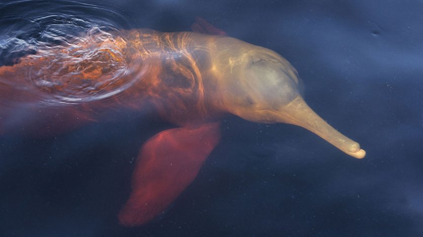 Endlich hat es aufgehört zu regnen und die Expedition kann, nachdem Jenilson das Boot ausgeschöpft hat, weitergehen. Gemütlich tuckern wir an verschiedenen Reiherarten vorbei und beobachten Chamäleone, die sich in Ufernähe sonnen. Tukane, die mit ihrem überproportional grossen Schnabel einem Flugzeug ähneln, fliegen im Auf-und-ab-Flug über uns hinweg. Plötzlich hält Jenilson an: „Da vorne! Im Wasser! Ein rosa Delfin!“ Ungläubig suche ich die Wasseroberfläche ab, und tatsächlich: ein rosa schimmernder Amazonasdelfin streckt seine Nase aus dem Wasser, gefolgt von Stirn und Rumpf. Faszinierend. Auch Nilson ist sichtlich bewegt und springt ins Wasser, um den Delfin zu streicheln, was dieser auch ohne weiteres zulässt. Ein ergreifender Moment, an den ich mich auf der Rückreise gerne ausgiebig erinnere – bis nach Manaus dauert es schliesslich ein Weilchen.