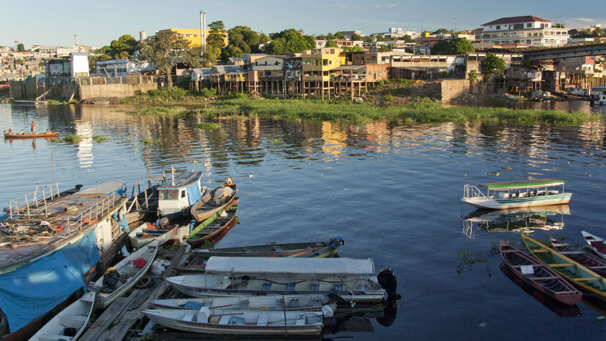 Die Hauptstadt des Staates Amazonas ist Ausgangspunkt für sämtliche Reisen in die Region. Egal wohin diese führen, ein Schiff ist dafür unverzichtbar. Vom bunt bemalten hölzernen Rundfahrtenschiff bis zum rustikalen Einbaum passieren wir unzählige Bootsarten auf unserem Weg auf die andere Seite des Rio Negro, wo der Transport zur Dschungel-Lodge im VW-Bus weitergeht. Ja sogar eine schwimmende Filiale der Bank Bradesco liegt vor Anker und für abgelegenere Regionen gibt es zusätzlich Gerichts- und Spitalschiffe.