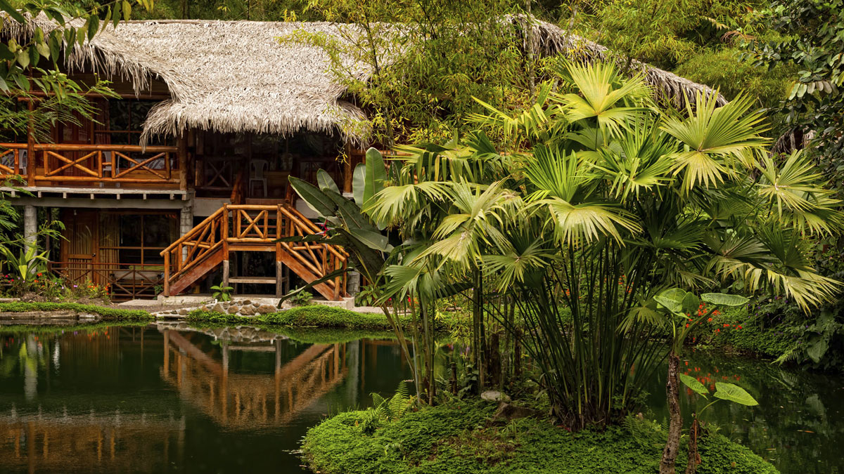 begrüsst er unsere Gruppe schmunzelnd in perfektem Englisch. Und tatsächlich, schon nach wenigen Minuten Fahrt auf einer lehmigen Landstrasse sehen wir nur noch ab und zu einzelne Häuser. Die Strasse wird zunehmend unebener und schmaler. In einem Teich entdecke ich Riesenseerosen mit ihren charakteristischen kreisrunden Blättern, weiter vorn fliegt eine Gruppe rotblau-gefiederter Aras majestätisch über die Baumkronen.