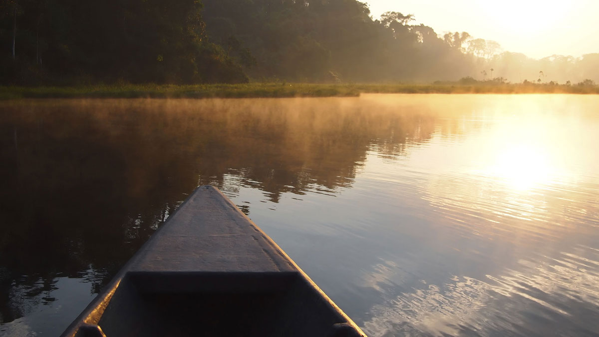 Seit zwei Stunden das gleiche Bild beim Blick durch das Flugzeugfenster: graue Wolken. Doch nun, da wir etwas tiefer fliegen, lichten sie sich und auf einmal wechselt der Farbton. Eine unendliche sattgrüne Fläche kommt zum Vorschein. Nichts als Grün, soweit das Auge reicht. Nur hie und da schlängeln sich kleinere und grössere Flüsse durch das Dickicht. Das muss er also sein, der Regenwald des Amazonasbeckens. Die grüne Lunge des Planeten, grösser als Westeuropa, Reservoir von 20% des weltweiten Süsswassers und Heimat von mehr als 40 000 Tier- und Pflanzenarten.