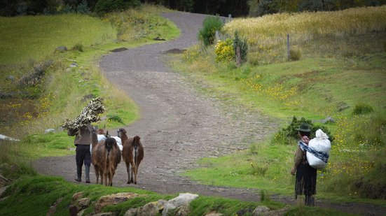 Am nächsten Tag machen wir uns bereits im Morgengrauen auf um den ursprünglichen Markt in Saquisilí zu besuchen. Dieser findet immer donnerstags statt und ist für uns ein absoluter Höhepunkt. Bereits unterwegs treffen wir Pablo, einen Bauern, der mit seiner Frau und seinen zwei Alpacas auf dem Weg zum Markt ist um dort sein Feuerholz zu verkaufen. Er freut sich über unsere exotischen Gesichter. Europa ist hier das Ende der Welt und so kennt er ausschliesslich unseren westlichen Nachbarn Frankreich. «Francia, Francia…» sagt er immer wieder und lächelt freudestrahlend. Er zeigt sich tief beeindruckt von der langen Anreise aus Europa, die wir auf uns genommen haben, um sein Land kennen zu lernen.