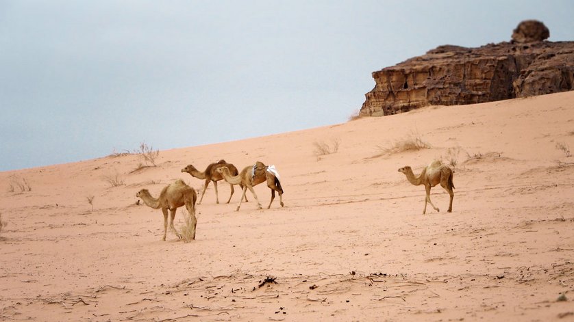 Die Reise führt weiter ins Wadi Rum, in den dramatisch-malerischen Teil der Wüste, in dem der Film «Lawrence von Arabien» gedreht wurde. Eiskalt ist es immer noch, aber wunderschön. Ich wärme mich im Beduinenzelt mit heissem Tee. Eine Herde freilaufender Kamele zieht gemächlich vorbei, später eine uralte, zerfurchte, bucklige Frau mit ihrer Ziegenherde. Mitten im Niemandsland, zwischen ewigen Felsen auf in allen Rotschattierungen schimmerndem Sand. Eigentlich hätte ich die Nacht in der Wüste verbringen wollen, doch es ist zu kalt. Ra’ed bringt mich stattdessen in den Badeort Aqaba, wo es mild, chic und westlich ist. Wieder fühle ich mich fehl am Platz: nach Tagen in der Wüste in diesem Badeort, der irgendwo auf der Welt sein könnte. Auf dem Markt erstehe ich zu Ra’eds grosser Freude die aktuellen Platten von Darine, Nancy und Elissa, deren Hits ich mittlerweile mitschmettern kann: den Text zwischen den «Habibis» fülle ich ungeniert in meinem selbsterfundenen, lautmalerischen Arabisch.