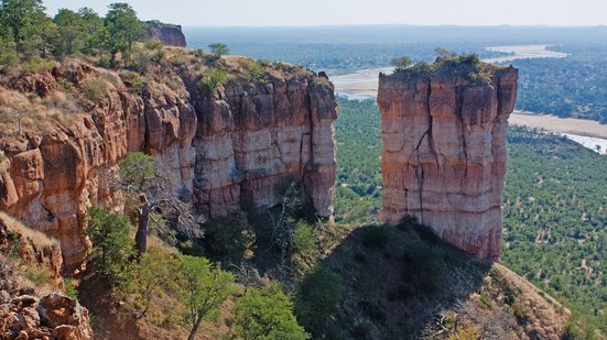 Das Ziel unserer Fahrt sind die Chilojo Cliffs. Wir kommen am Fuss der in verschiedensten Rottönen strahlenden Klippen an – und müssen uns erst mal die Hände dreckig machen: einen Platten mitten im Nationalpark, mindestens eine Stunde Weg bis zum Parkeingang und kein Handyempfang. Damit ist aber der Abenteurerinstinkt geweckt und wir kämpfen uns auch mit Ersatzrad um die Klippen herum und auf das Plateau hinauf. Die Aussicht von der Felskante über den darunter gemächlich vorbeifliessenden Fluss und den Park lässt die Strapazen vergessen.