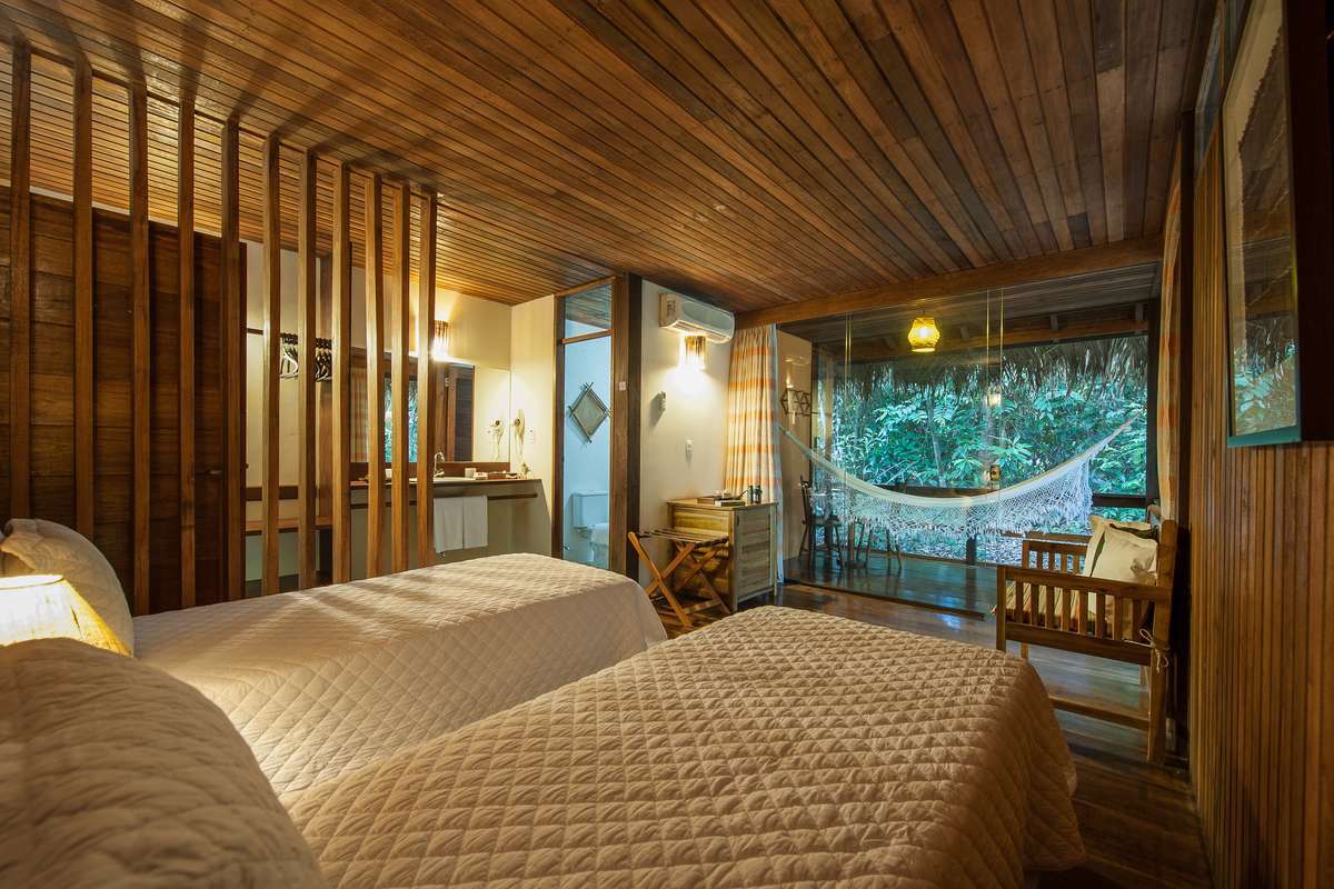 Infrastruktur16 rustikale, gemütliche Zimmer (28 m2) mit Klimaanlage, Minibar, Safe und Veranda mit Hängematte. Weiter 4 Superior-Bungalows (39 m2) sowie 2 Panoramic-Bungalows (70 m2). Das zwischen Bäumen versteckte Restaurant offeriert lokale und internationale Küche. Ein Swimming-Pool, ein Aufenthaltsraum, eine Bar und ein 13 m hoher Aussichtsturm vervollständigen das Angebot.