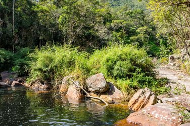 Ganztägige Wanderung (14 km) zum Sossego-Wasserfall. Auf einem alten Goldgräberpfad folgen Sie dem Riberão-Fluss bis zum imposanten Wasserfall. Nach dem Mittagessen und einem Bad im Fluss nehmen Sie den Rückweg in den Angriff.