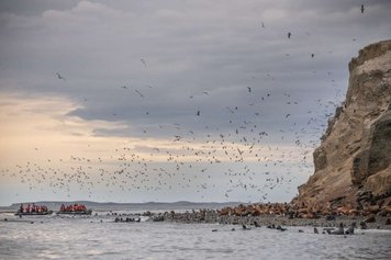 Im Morgengrauen Fahrt zur Ainsworth-Bucht. Landgang mit Blick auf den Marinelli-Gletscher und Wanderung durch den magellanischen Urwald. Schlauchbootfahrt um die Insel Tucker, wo Sie Magellan-Pinguine und Kormorane sehen. (F, M, A)